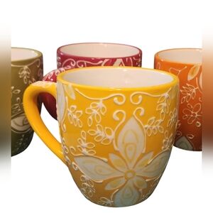 3D Hand Painted Embosssed Ceramic Corn Flower Mug