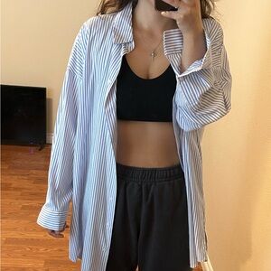 Stylish striped button-up shirt. Perfect for casual wear. Lightweight and comfortable.
