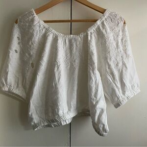 New without tags! 100% Cotton with embroidered florals and cutouts on sleeves. Cropped length.