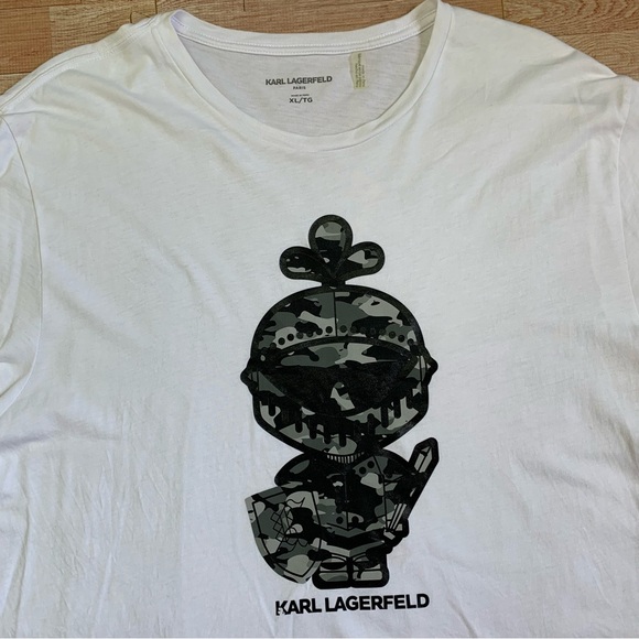 Karl Lagerfeld Paris Camo Armor Pima Cotton Shirt Mens XL White Short Sleeve Tee