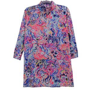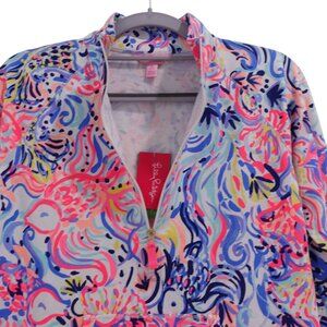 Tags: Lilly Pulitzer, Mini Skipper Shift Dress, long sleeve popover, quarter zip dress, French terry shift, kangaroo pocket, mock neck, cotton spandex blend, preppy dress, resort wear, casual golf dress, sporty shift dress, vacation dress, pullover shift, tropical casual, comfortable dress, vibrant print dress, beach chic dress, relaxed fit mini, club Lilly style, collectible Lilly dress, cute mini dress, everyday resort style, warm weather knit dress, pullover knit dress, sporty preppy, Lilly signature dress