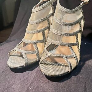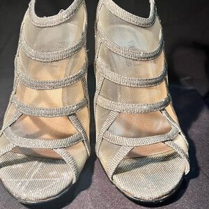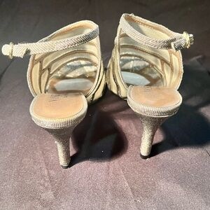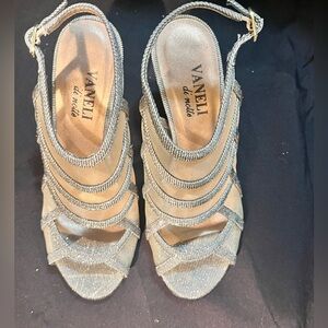 This show was worn one time. This Vaneli Tuccy slingback is in a eautiful champagne color