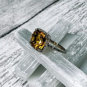 14k White Gold Citrine & Diamond Ring. The ring is not stamped and tests as 14k. Photos were taken under a bright light, color may vary slightly. Open to offers, no lowballing please. All orders come packaged in a velvet jewelry box.