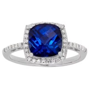 14k White Gold Lab Created Sapphire & Diamond Ring. Photos were taken under a bright light, color may vary slightly. Open to offers, no lowballing please. All orders come packaged in a velvet jewelry box.