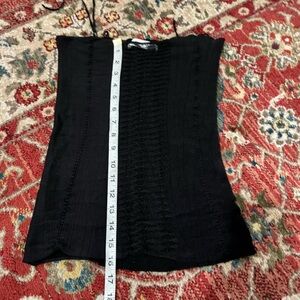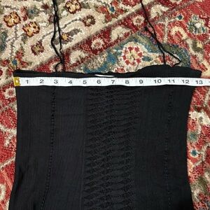 Please zoom into pictures for sizing and condition. No holes or stains. Video attached to show the open knit panel with laddering down the front. The top is made of stretchy material and has self-tie shoulder straps. Using the straps, you can cinch the top to whatever length you’d like (keep it long, or cropped). Green version of this top seen on Lila Moss. Super sexy and perfect for summer!!