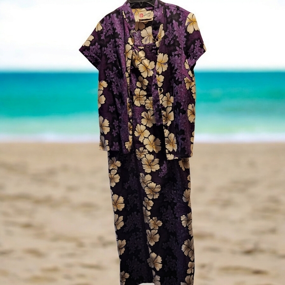 Absolutely stunning 2 piece original Made in Hawaii purple, cream & black dress.