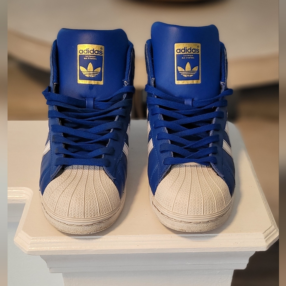 Adidas Pro Model High Men's Top Sneakers, Blue & White, Sz 10.5
