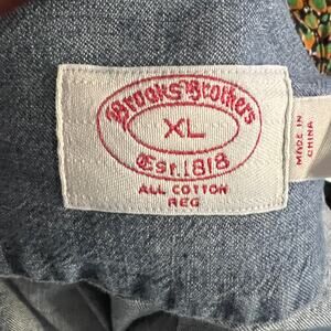 Men's Brooks Brother's Denim Oxford button down "All Cotton Reg" (fit) med wash , !00% Cotton, Single pocket Left side .