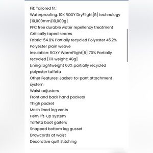 roxy insulated ski/snowboard pants in slim fit
