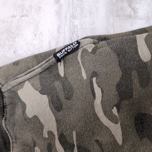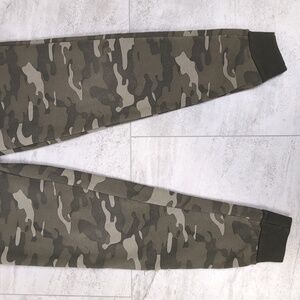 Stylish camouflage jogger pants. Comfortable fit with elastic waistband and warm fleece interior. Perfect for casual wear.