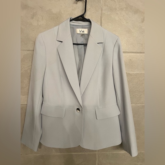 This light blue suit comes with the pants. So cute & classy. Great for your next business meeting.