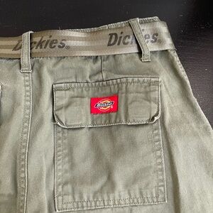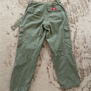 Dickies cargo pants in size 1/25. Lightly worn and great for casual outfits. Velcro pockets and matching belt. Best for short girls - I’m 5’2 and they fit perfectly.