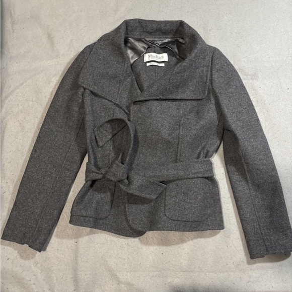 Max Mara Cucito A Mano wool/rabbit coat. Cucito A Mano = hand sewn, this is a high quality staple/investment piece. Perfect condition, never worn. Soft, warm material, perfect for transitioning to spring. Tie waist gives flattering silhouette. Size US 4, best fits bust size 32-24, waist size 25-27.