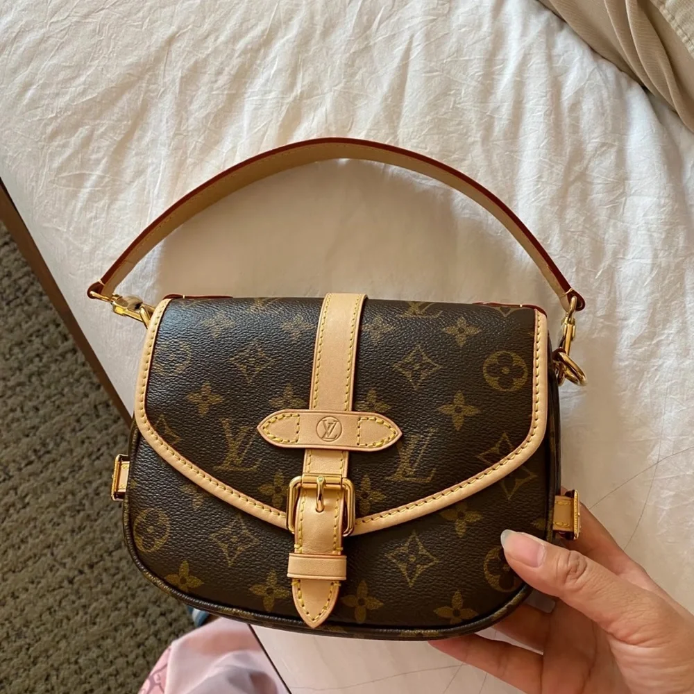 The Saumur BB handbag in Monogram canvas reimagines a beloved archival design in contemporary style. The saddle-bag shape and natural cowhide-leather buckles evoke an equestrian spirit, but the front buckle conceals a magnetic closure: a convenient modern touch. With room inside for a day’s essentials, this compact bag is versatile too, thanks to the detachable strap and handle.