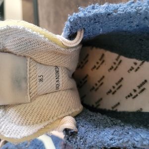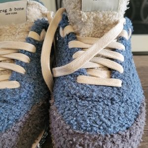 Experience the unique charm of Rag & Bone sneakers, featuring a cozy fuzzy texture in elegant blue and gray shades. The light beige laces and cream tongue provide a stylish contrast, while the durable rubber sole ensures comfort and support. Ideal for casual outings, these sneakers effortlessly blend fashion with function.