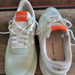 These Adidas sneakers boast a sleek and modern design, featuring a vibrant green and white color scheme. Crafted for comfort and style, they are perfect for everyday wear and active pursuits. The lace-up design ensures a secure fit, while the durable sole offers excellent traction.