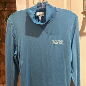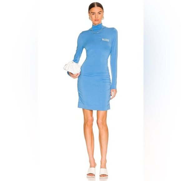 Ganni Software Light Stretch Jersey Dress in Blue. - size XL Ganni Software Light Stretch Jersey Dress in Blue. - 96% lyocell 4% elastane. Made in Portugal. Machine wash. Unlined. Pull-on styling. Front screen print logo detail. Slinky jersey fabric with ruched sides. GANR-WD68. T3178.
