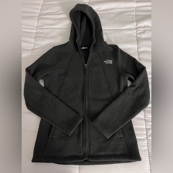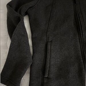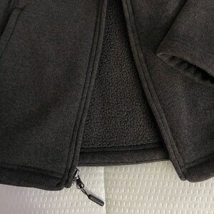 In great condition! Fleece sweater, dark gray, very soft and warm. Zipper works perfect, no issues, no rips, no stains or damage. I will ship same day! :)