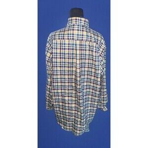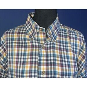 This Brooks Brothers shirt is a men's casual button-down style in size L, made of 100% cotton fabric with a plaid pattern in multicolor. It features a collared neckline with a button-down collar style and long sleeves. The shirt has a chest size of 50 inches and a regular fit. With a non-iron feature, this shirt is easy to care for by machine washing. The brand's reputation for quality and style is reflected in this classic, yet versatile piece suitable for various casual occasions.