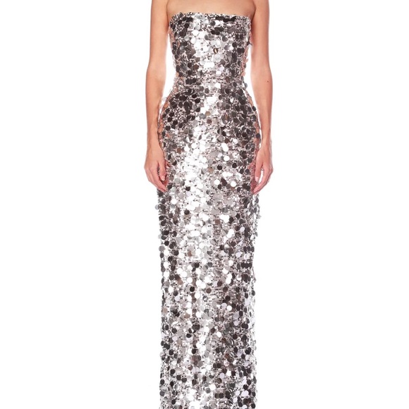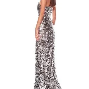 Stunning strapless gown adorned with silver sequins. Perfect for glamorous events. Never worn. Just arrived