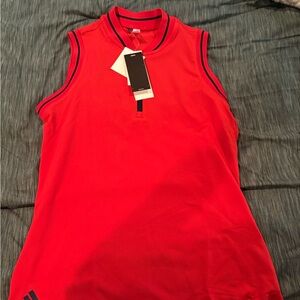 Elevate your activewear with this vibrant red sleeveless top from Adidas. Perfect for workouts or casual outings, it offers both style and comfort.