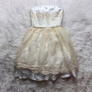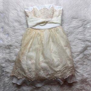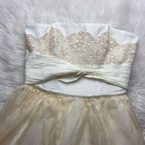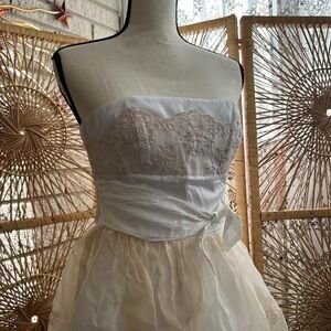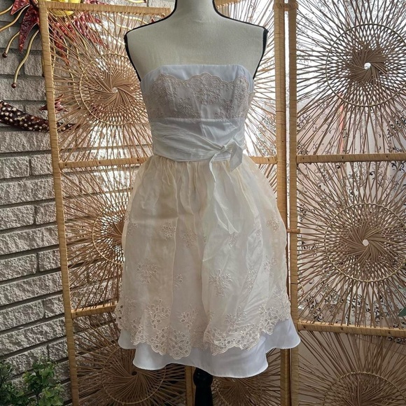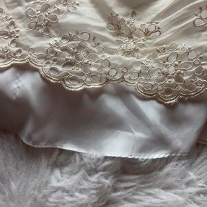 Creamy ivory colored 00’s era babydoll cupcake style mini dress with eyelet lace accents