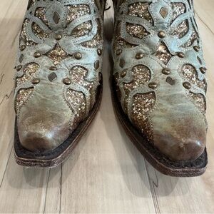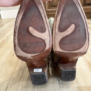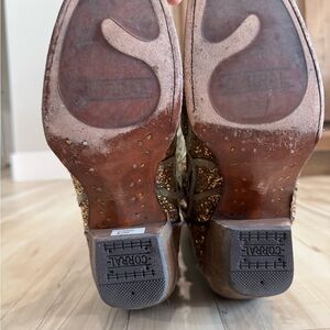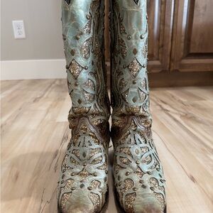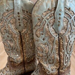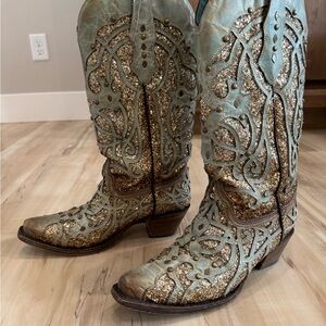 Absolutely gorgeous lightly used corral boots. Wore them for probably 3 events. They are my favorites but they are too small. Please see flaws on toes, heels, and wear on bottom. This size is sold out everywhere!