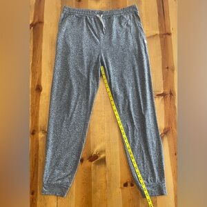 Performance Jogger by Vuori. Size L, see photos for measurements. Heather Gray color. Great pre owned condition, very minor pilling on seams as pictured. Material is ultra soft and comfortable, perfect for travel or all day wear! Elastic at waist and cuffs and drawstring are in excellent condition. A must-have in your Athleisure wardrobe!