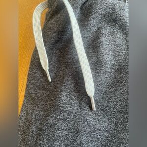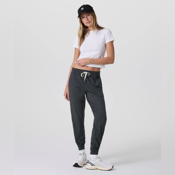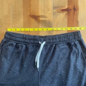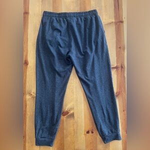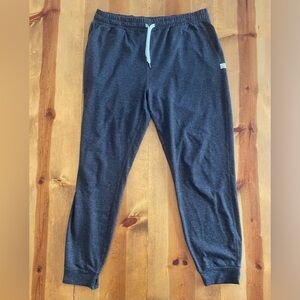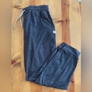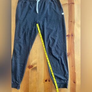 Performance Jogger by Vuori. Size L, see photos for measurements. Charcoal Heather color. Great pre owned condition, very minor pilling on gusset and seams as pictured. Material is ultra soft and comfortable, perfect for travel or all day wear! Elastic at waist and cuffs and drawstring are in excellent condition. A must-have in your Athleisure wardrobe!