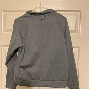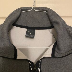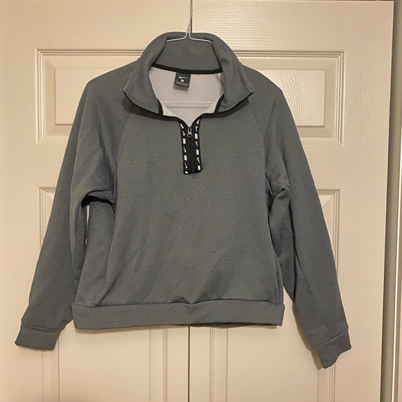 The lighting is bad in these pictures and the jacket is actually a little darker gray. Has only been worn a few times. No flaws. Has pockets.