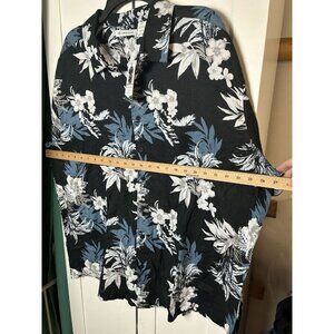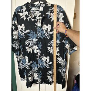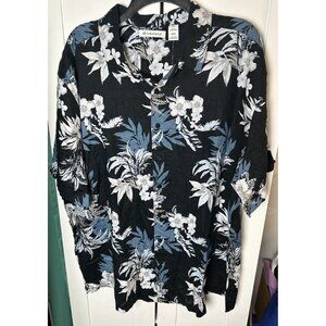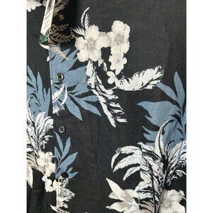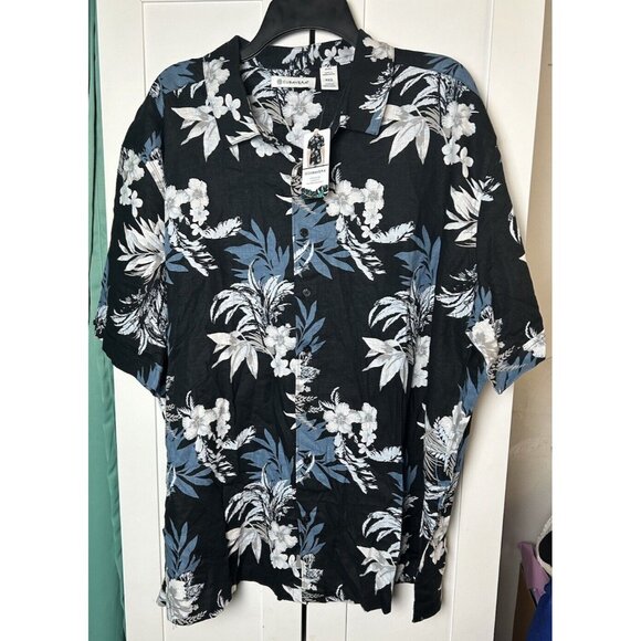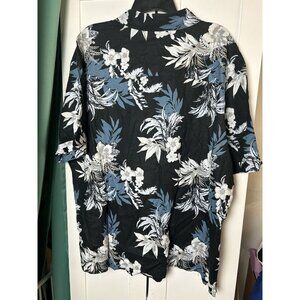 Cubavera Black Floral Print Short Sleeve Button Up Hawaiian Camp Shirt Size XXL linen blend.