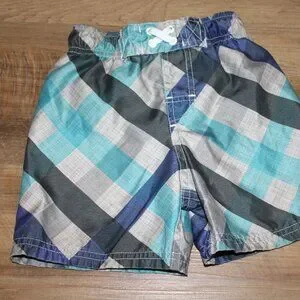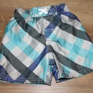 Toddler boy SIZE 2T Circo plaid swim trunks with elastic drawstring waist and built in net liner. In excellent pre-owned condition with no rips, holes, tears, snags or stains!