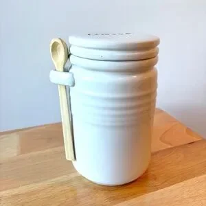 Excellent condition - no flaws! Measurements: 8inx5in Color: White Spoon included Offers welcome - bundle and save!