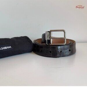 Auth Dolce & Gabbana Genuine Crocodile Leather Silver Buckle Belt 115/46
