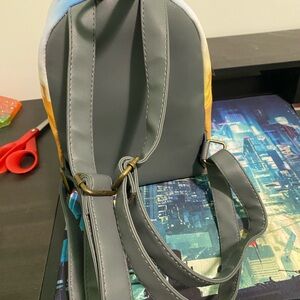 This charming Loungefly Pixar backpack features a playful design in blue and gray. Perfect for kids, it combines style and functionality. Ratatouille remy euc mini backpack