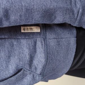 Custom corporate logo is embroidered on one sleeve. Classic roots logo patch is embroidered on the other.
