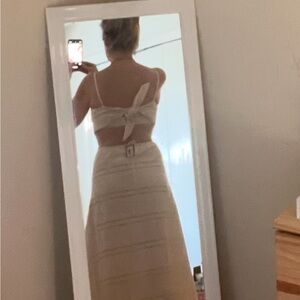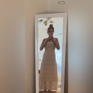 This elegant cream sleeveless dress is perfect for any occasion. Its timeless design offers a sophisticated look.