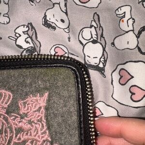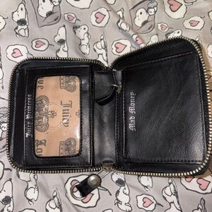M wallet with pink Juicy Couture logo. Features a secure zip closure. Only two small flaws, a barely visible green stain and the small rip inside the wallet as shown in the last pic.