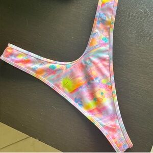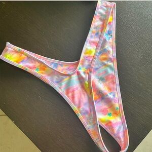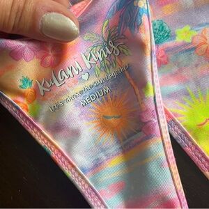 Dive into summer with the Kulani Kinis bikini, showcasing a stunning blend of pink and blue hues. This swimwear piece is designed for comfort and style, featuring a high-cut thong style with thin straps. Perfect for making a splash at the beach or poolside.