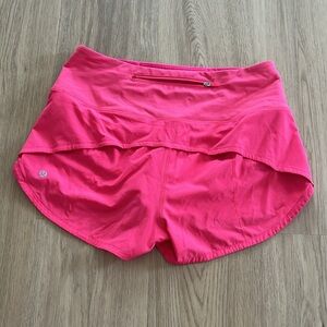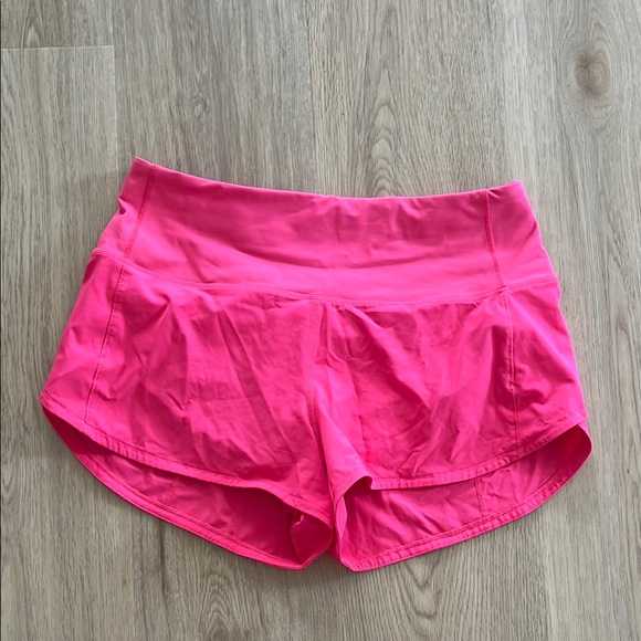 Lululemon speed up shorts. Mid rise. 2.5” length. Watermelon pink color. Brand new, washed but never worn. No flaws. I don’t like the length on me.