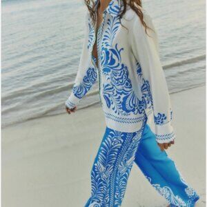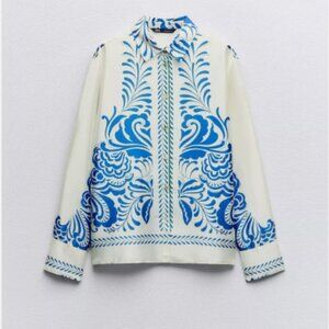 ZARA PRINTED SATIN PAISLEY SCARF PRINT SHIRT BLOUSE NWT SIZE M