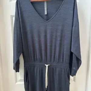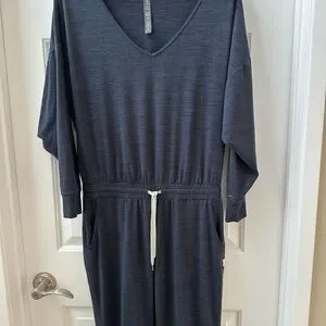 Experience ultimate comfort with the Vuori Blue Jumpsuit, featuring a relaxed fit and a stylish V-neckline. The elastic waist and tapered ankle design make it perfect for casual outings or lounging. Crafted from a soft fabric, this jumpsuit offers both style and ease.