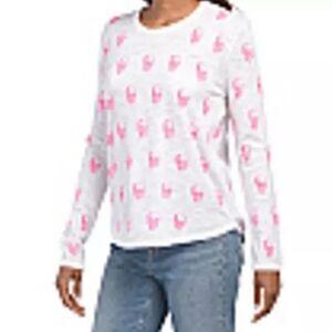 This stylish shirt features a playful pink skull pattern on a crisp white background. Perfect for adding a fun touch to any outfit. excellent pre-owned condition (85)
