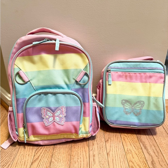 Pottery Barn Kids Rainbow Striped Kids Backpack and Lunchbox Set. Size Small
