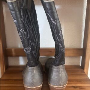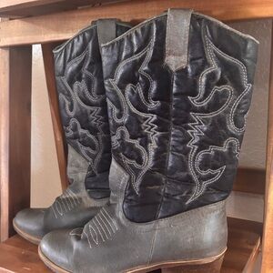 Step out in style with these chic black and gray western boots. Perfect for adding a touch of flair to any outfit. Great shape, only wore once for about a hour