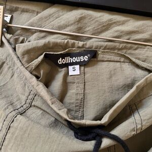 techno rave style, maxi length, drawstrings, pockets, and zipper slit on the backside