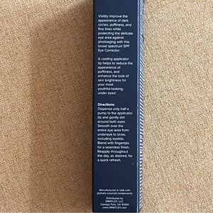 Details: under eye concealer, UVA/UVB protection, cruelty free, medical grade skincare