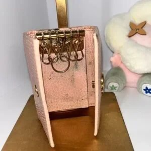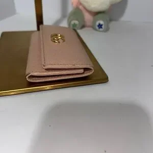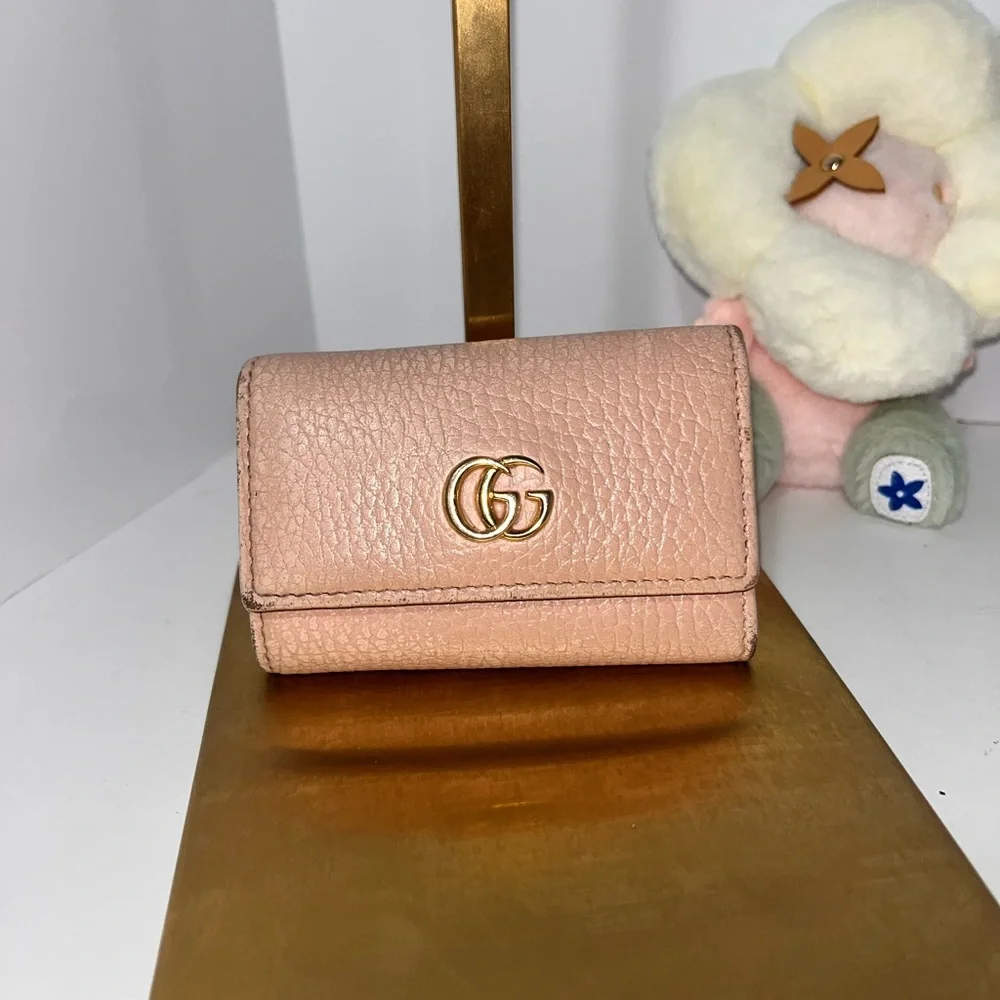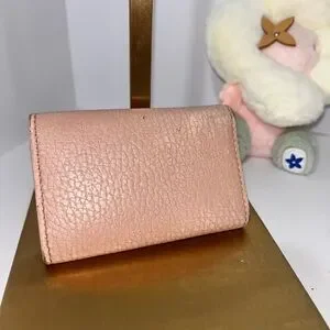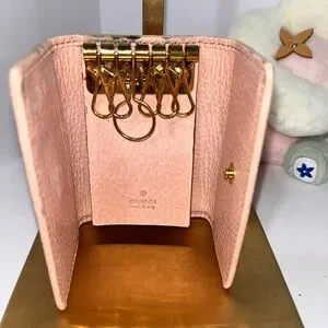 This exquisite Gucci key and card holder in a soft pink hue is a perfect blend of luxury and practicality. Featuring the iconic interlocking GG logo, it is crafted from high-quality leather with a smooth, polished finish. Ideal for organizing your essentials, it adds a touch of elegance to your everyday accessories. This item it’s used.