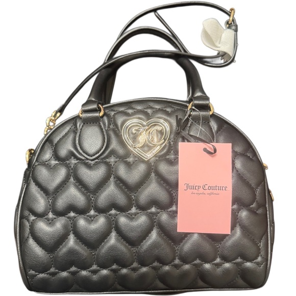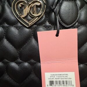 The Juicy Couture Black Quilted Satchel is a sophisticated accessory that combines elegance with practicality. Crafted with a luxurious quilted pattern, this satchel features a structured silhouette and gold-tone hardware, making it a standout piece for any ensemble. Its medium size and top zipper closure