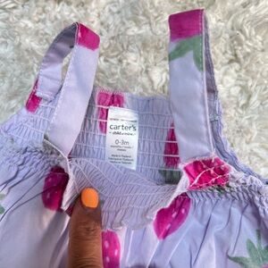 This delightful jumpsuit from Carter's features a playful strawberry print on a soft pink and purple fabric. Made from a comfortable, stretchy material, it's perfect for both playtime and relaxation.